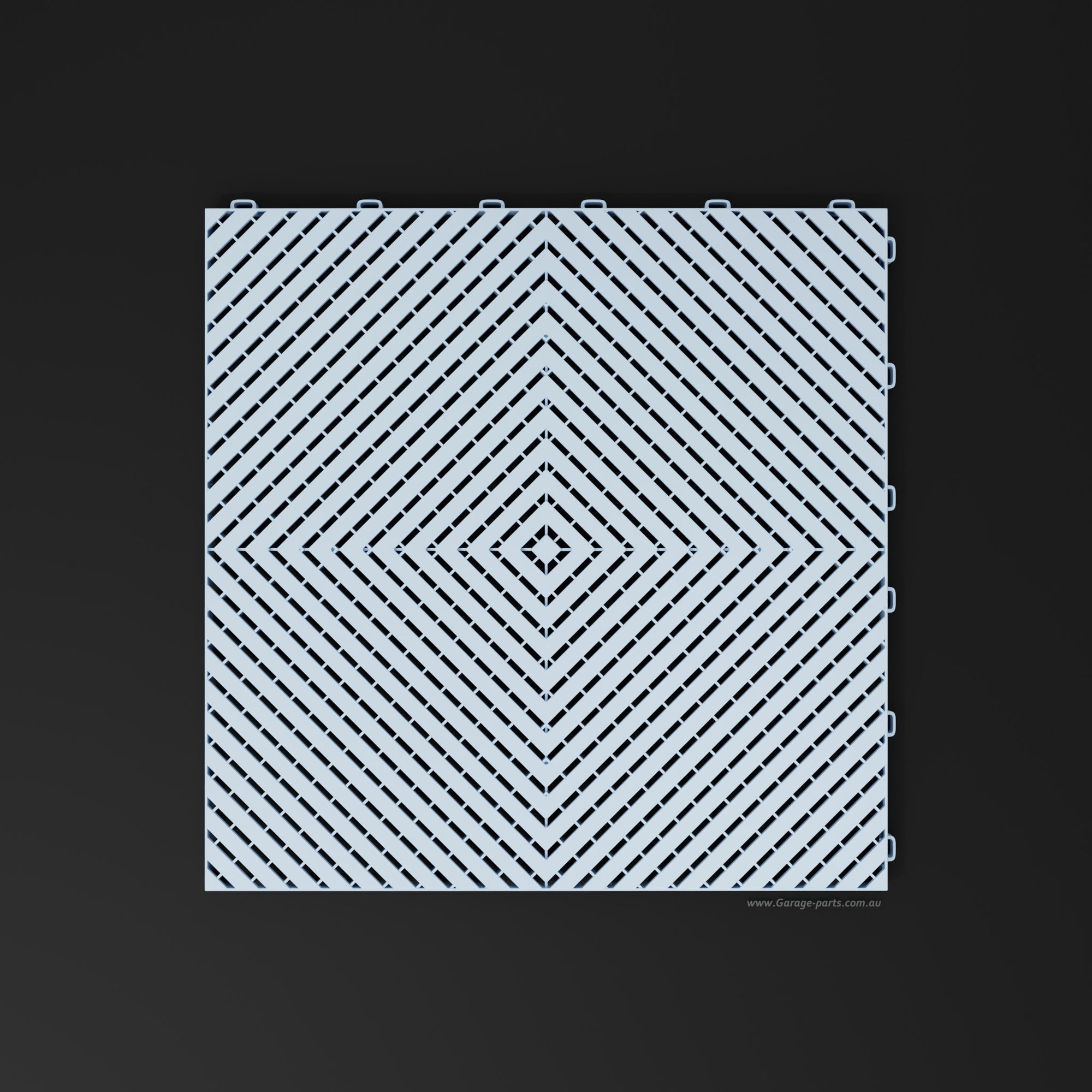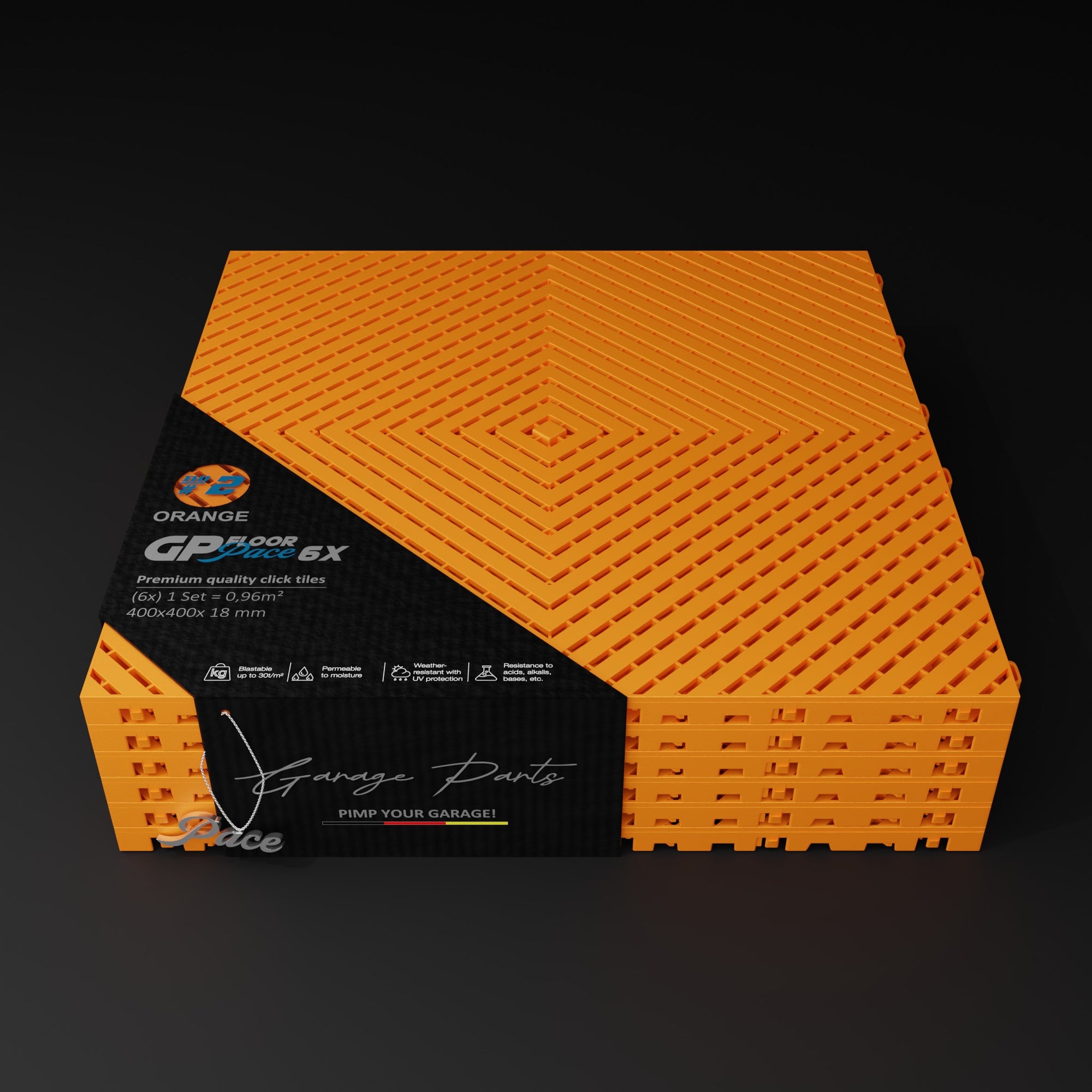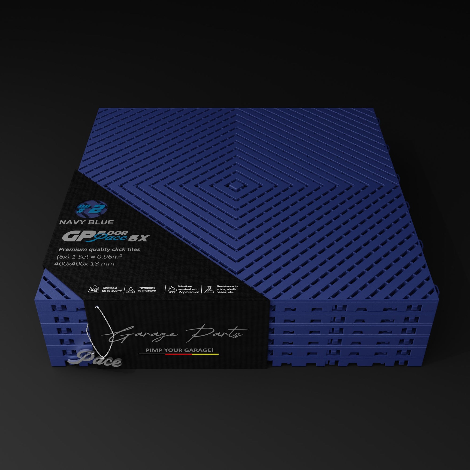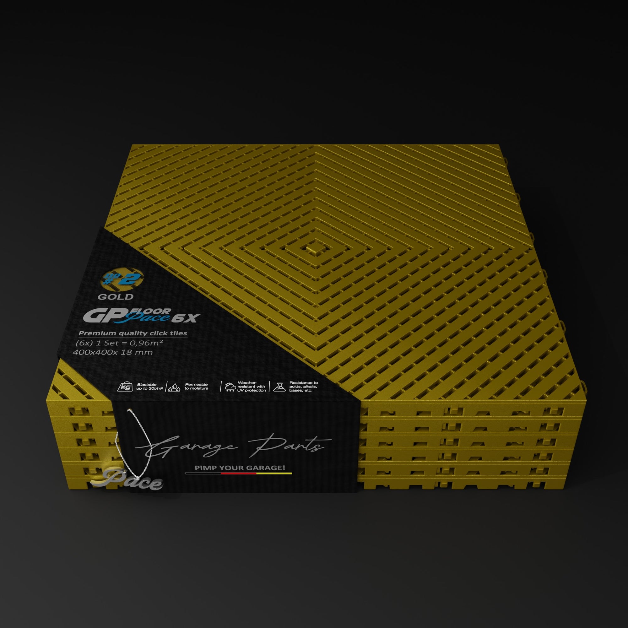 The Pace #1 model offers a unique advantage: Water dripping from a vehicle, for example, doesn't dry on the tile surfaces but is channeled through the tiles and allowed to dry underneath. This allows for excellent air circulation.