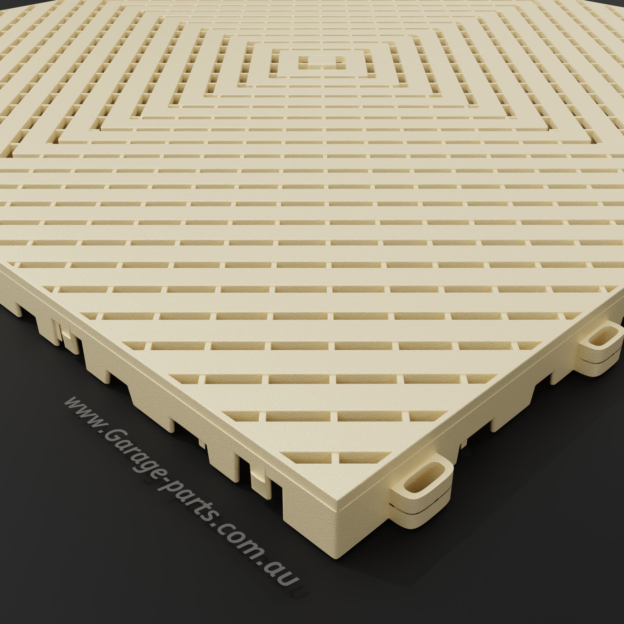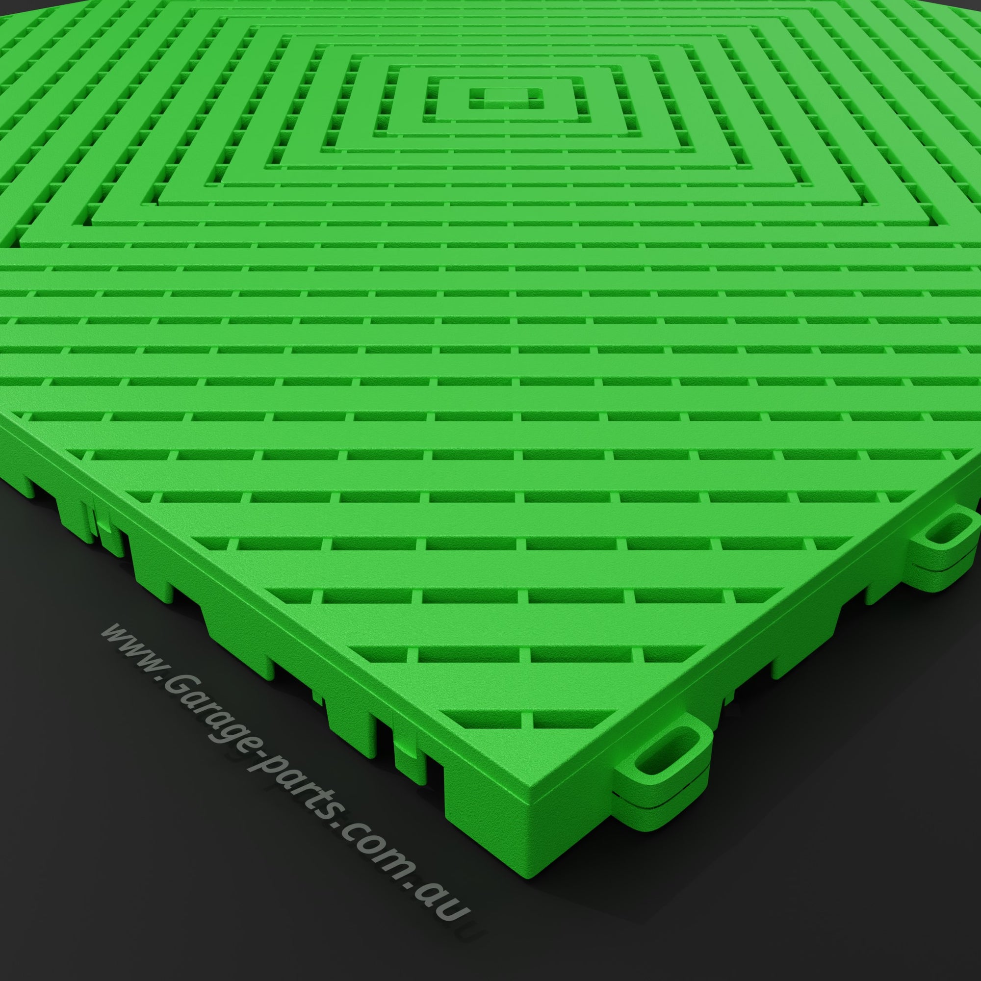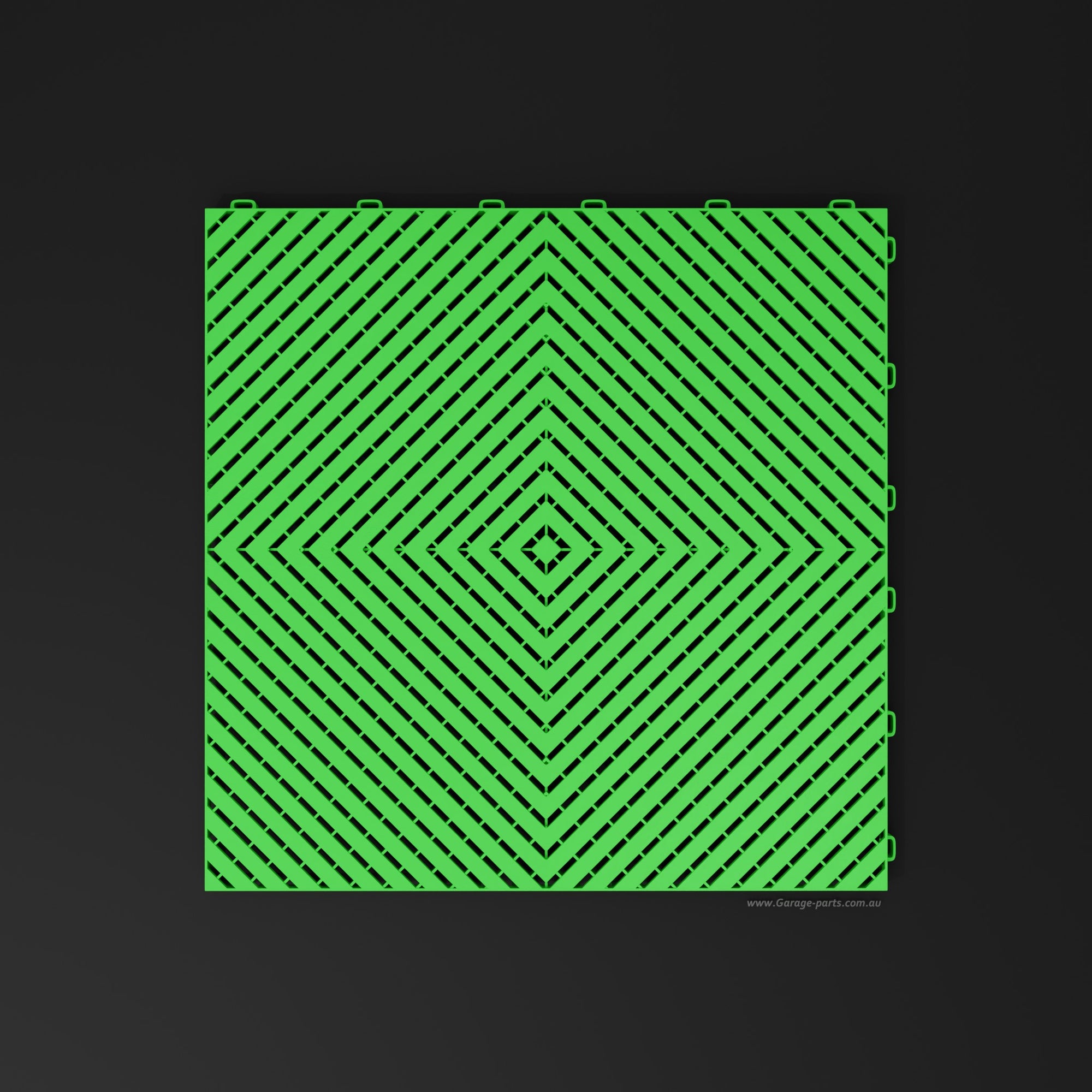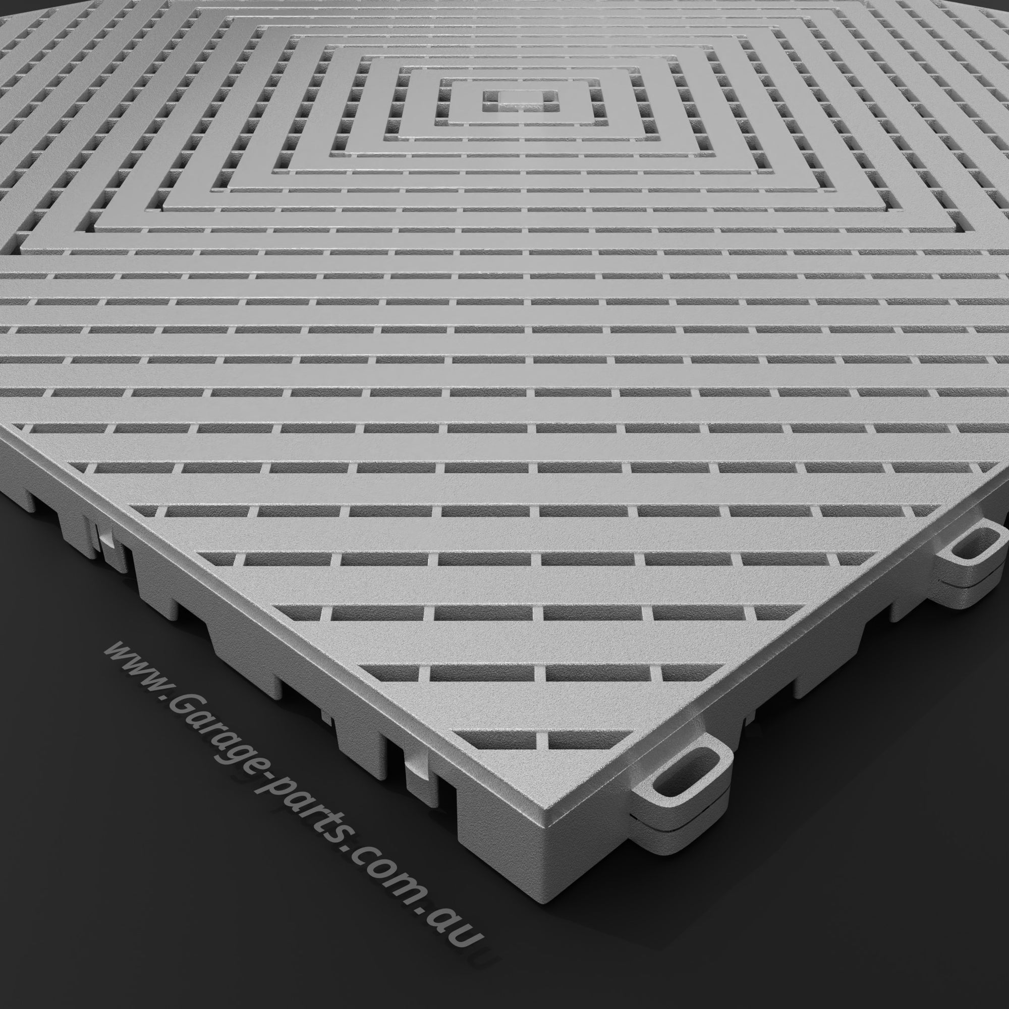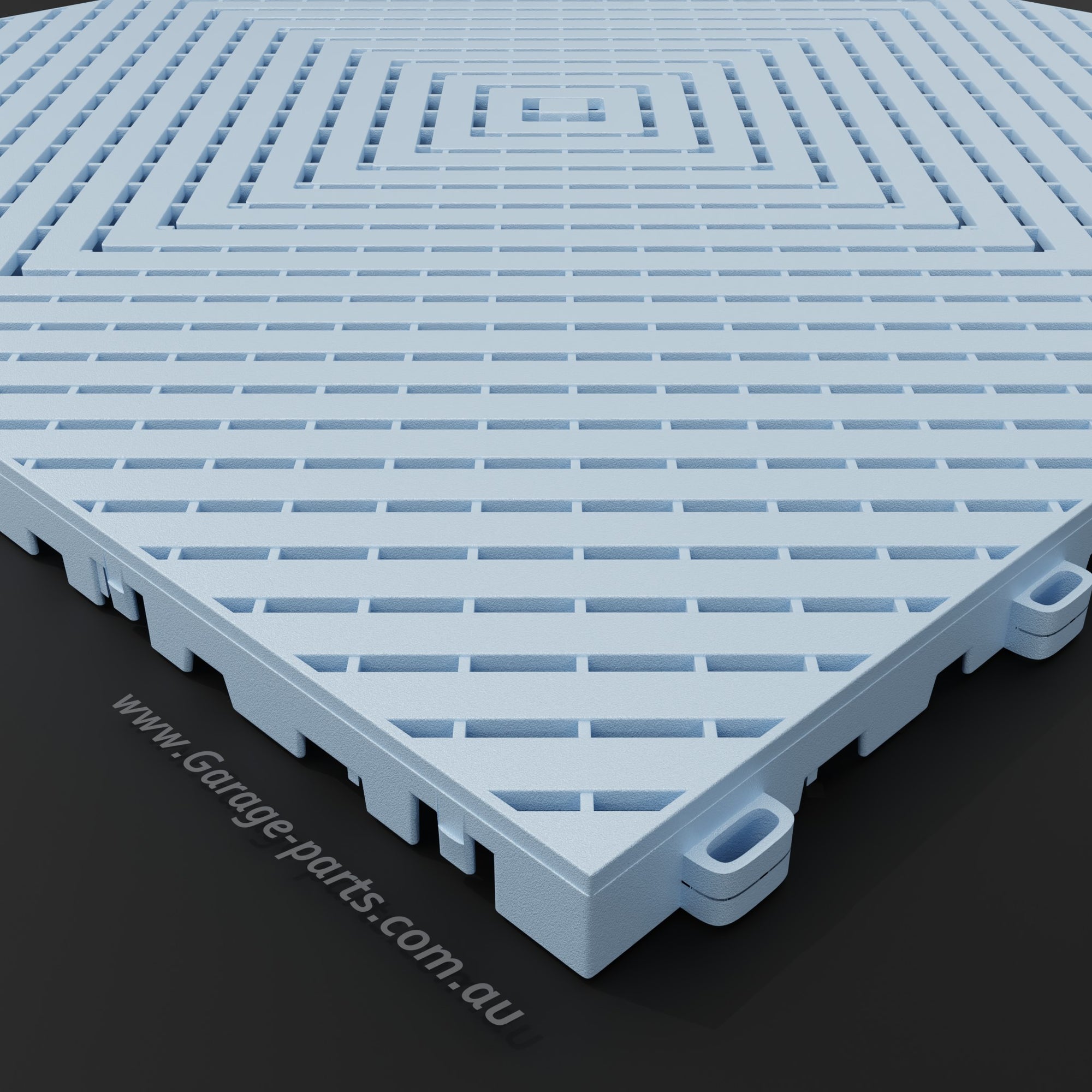 The Pace #1 model offers a unique advantage: Water dripping from a vehicle, for example, doesn't dry on the tile surfaces but is channeled through the tiles and allowed to dry underneath. This allows for excellent air circulation.
